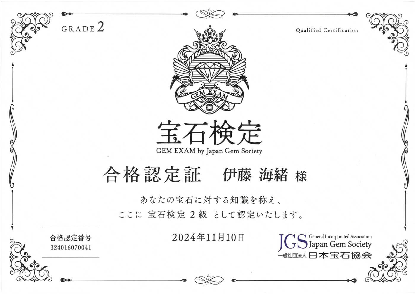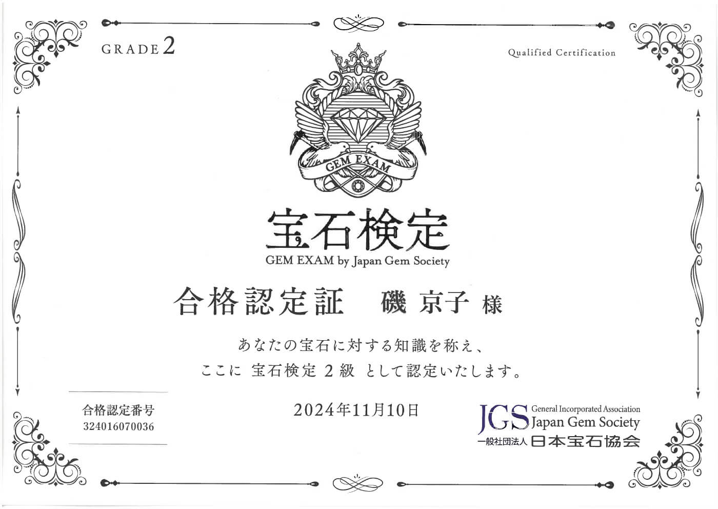 一般社団法人 日本宝石協会(JGS:General Incorporated Association Japan Gem Society)に加盟しております。