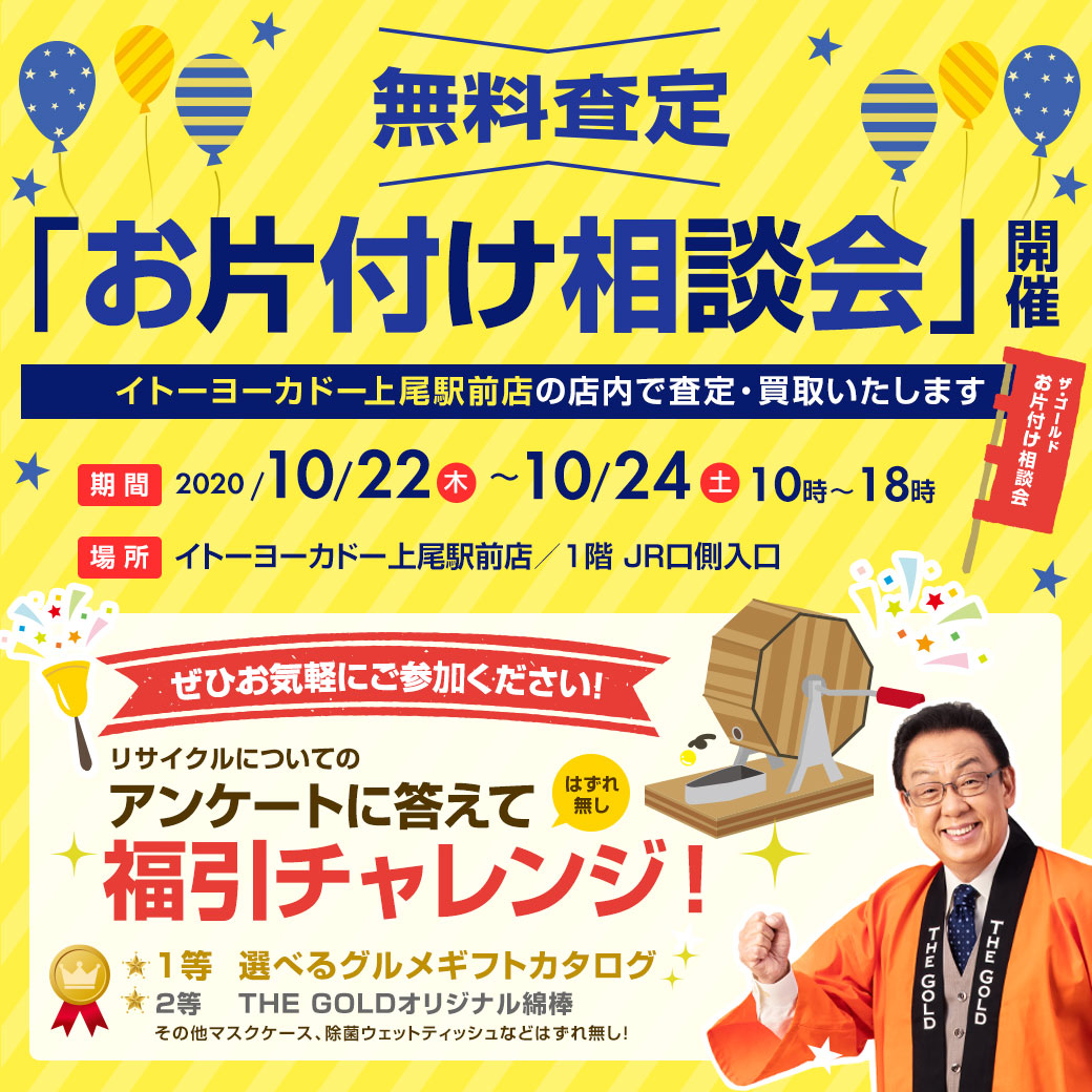 この度、イトーヨーカドー上尾駅前店さまの店内にて、THE GOLDの無料査定イベントを開催いたします。