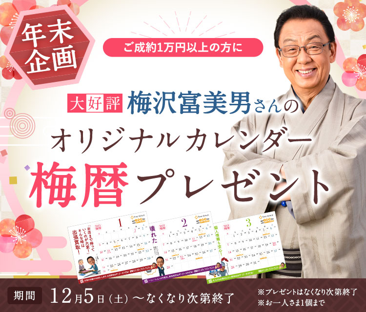 ザ・ゴールドでは、12月1日より、梅沢富美男さんのオリジナルカレンダー「梅暦」(非売品)プレゼントキャンペーンを開始いたしました。