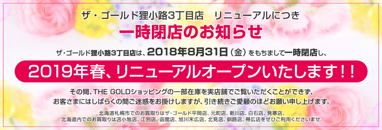 『ザ・ゴールド狸小路3丁目店』一時休業をお知らせいたします。