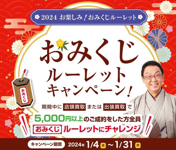 【内容】期間中に店頭買取または出張買取で5,000円以上のご成約でおみくじルーレットにチャレンジいただけます。