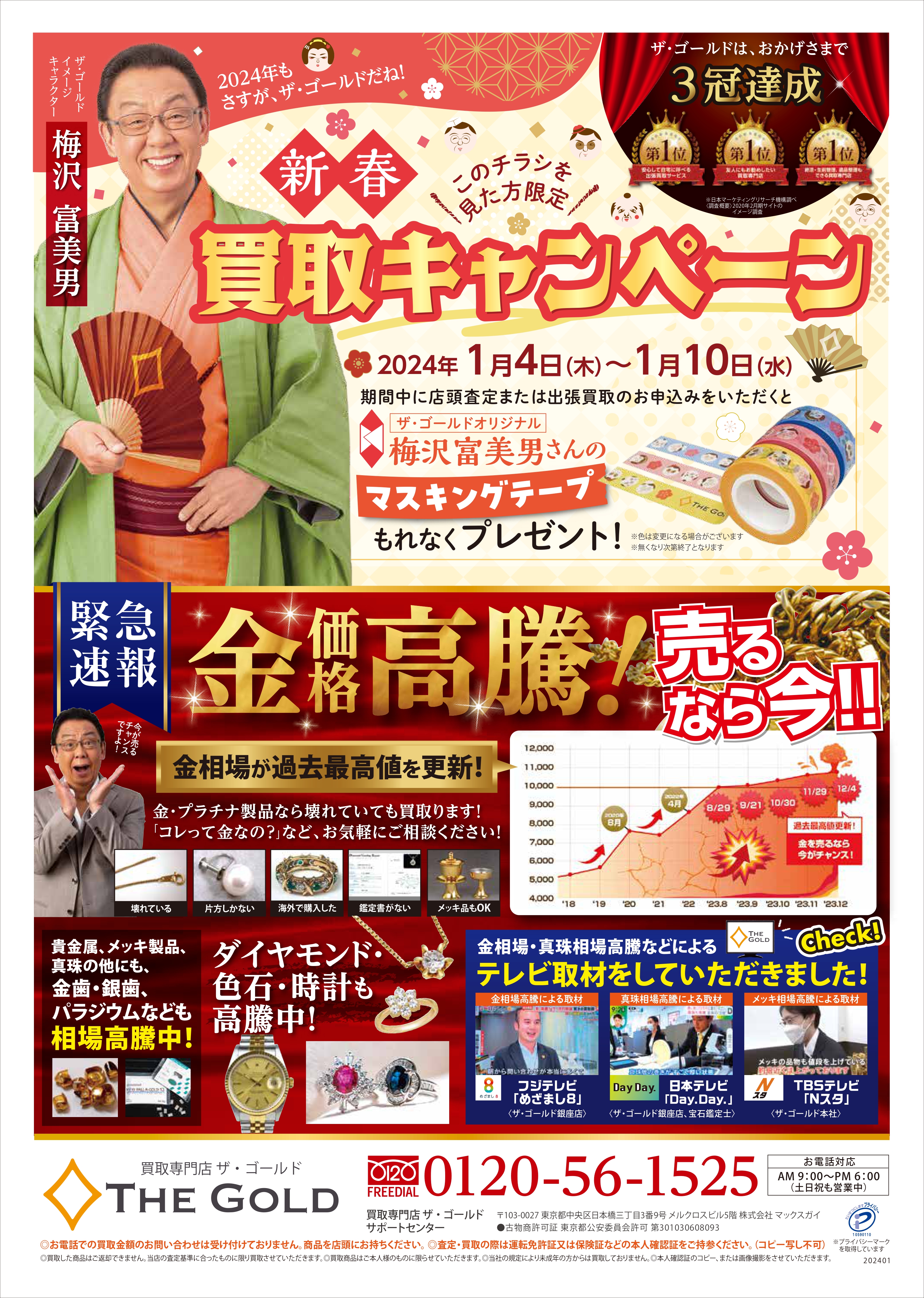 2024年1月4日(木)に、全国のザ・ゴールドの店舗がある地域に「新春買取キャンペーン」の新聞折込チラシを配布いたしました。
