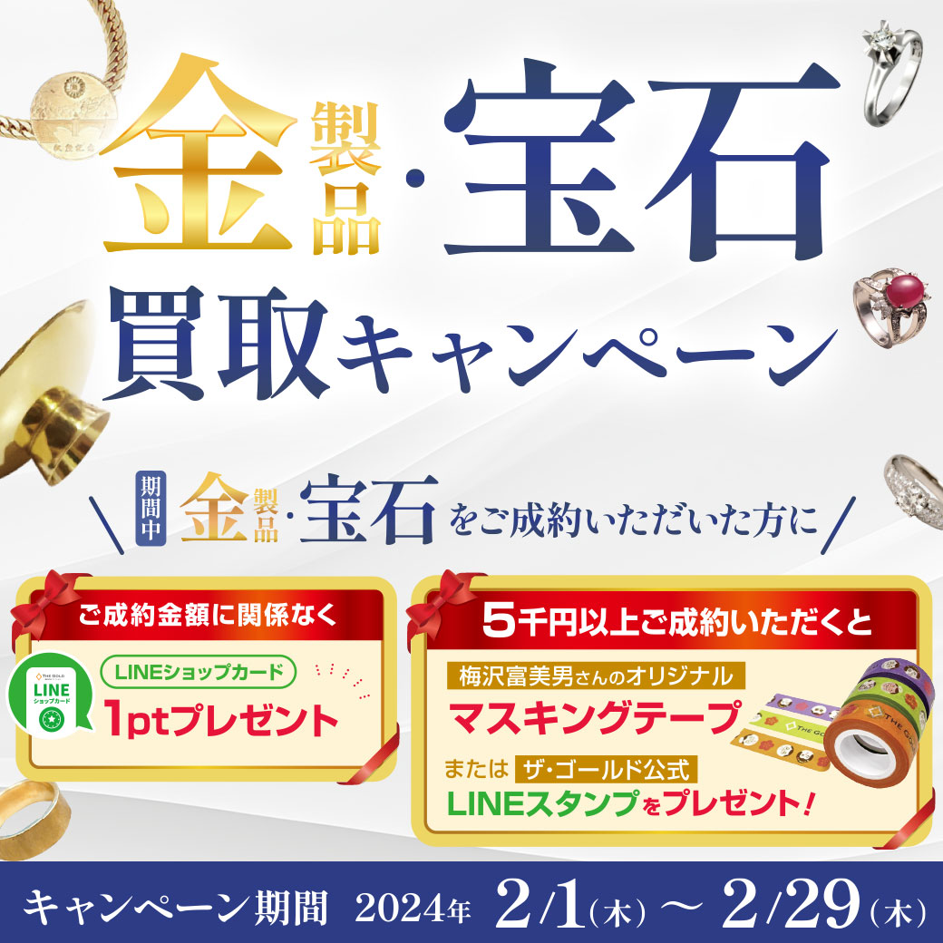 ザ・ゴールドでは、2月1日より、金製品・宝石買取キャンペーンを開始しました。