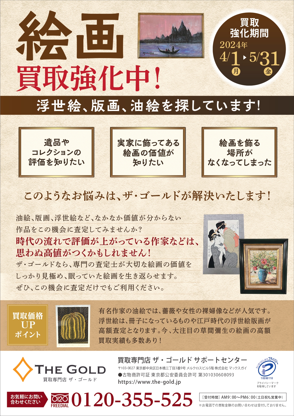 ザ・ゴールドでは、浮世絵、版画、油絵など「絵画」の買取を強化いたします。
