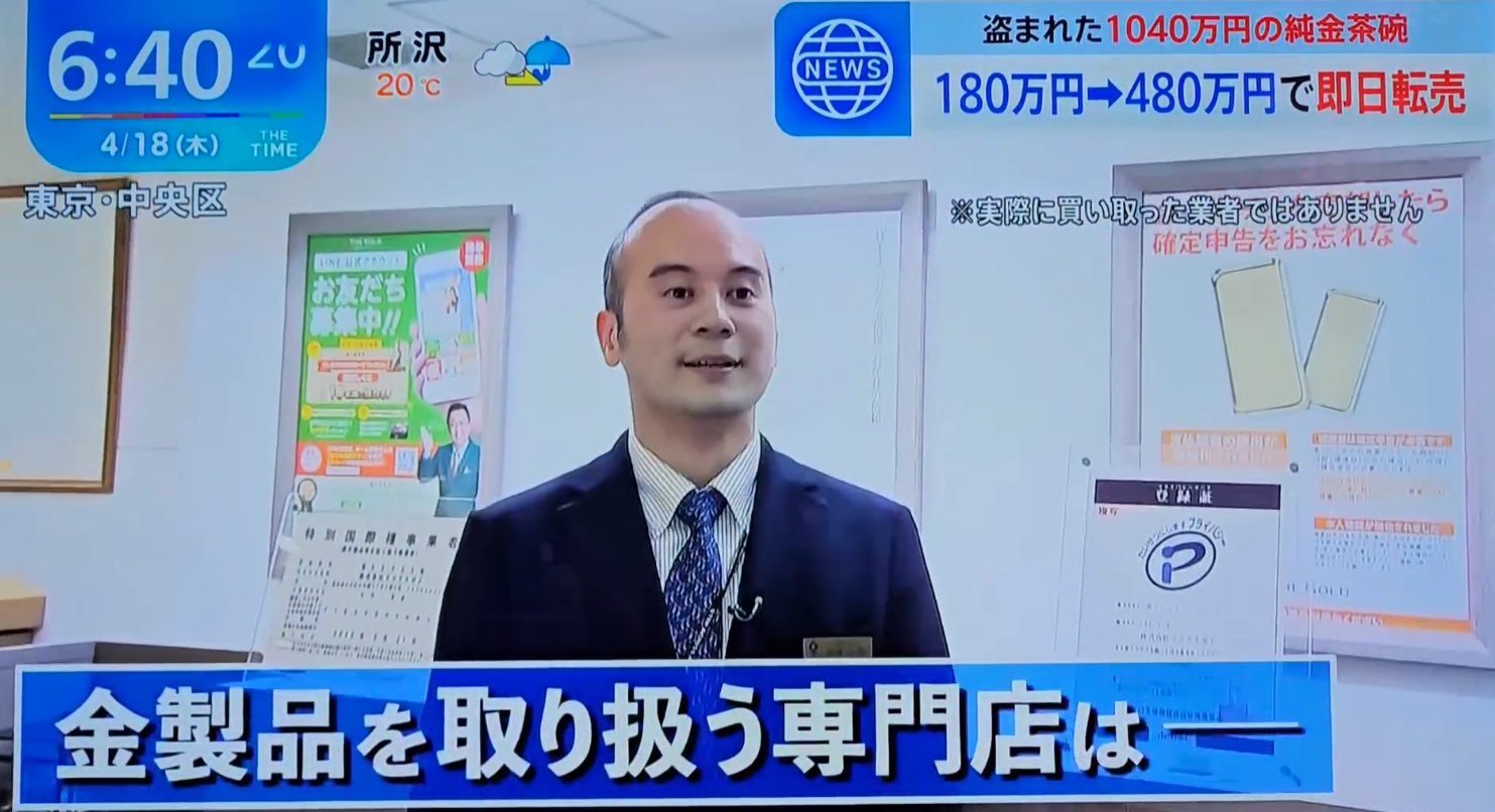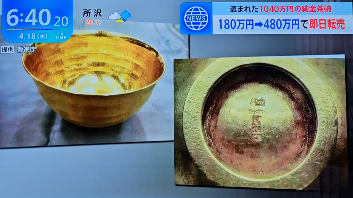 180万円→480万円で即日転売 盗まれた1040万円の純金茶碗