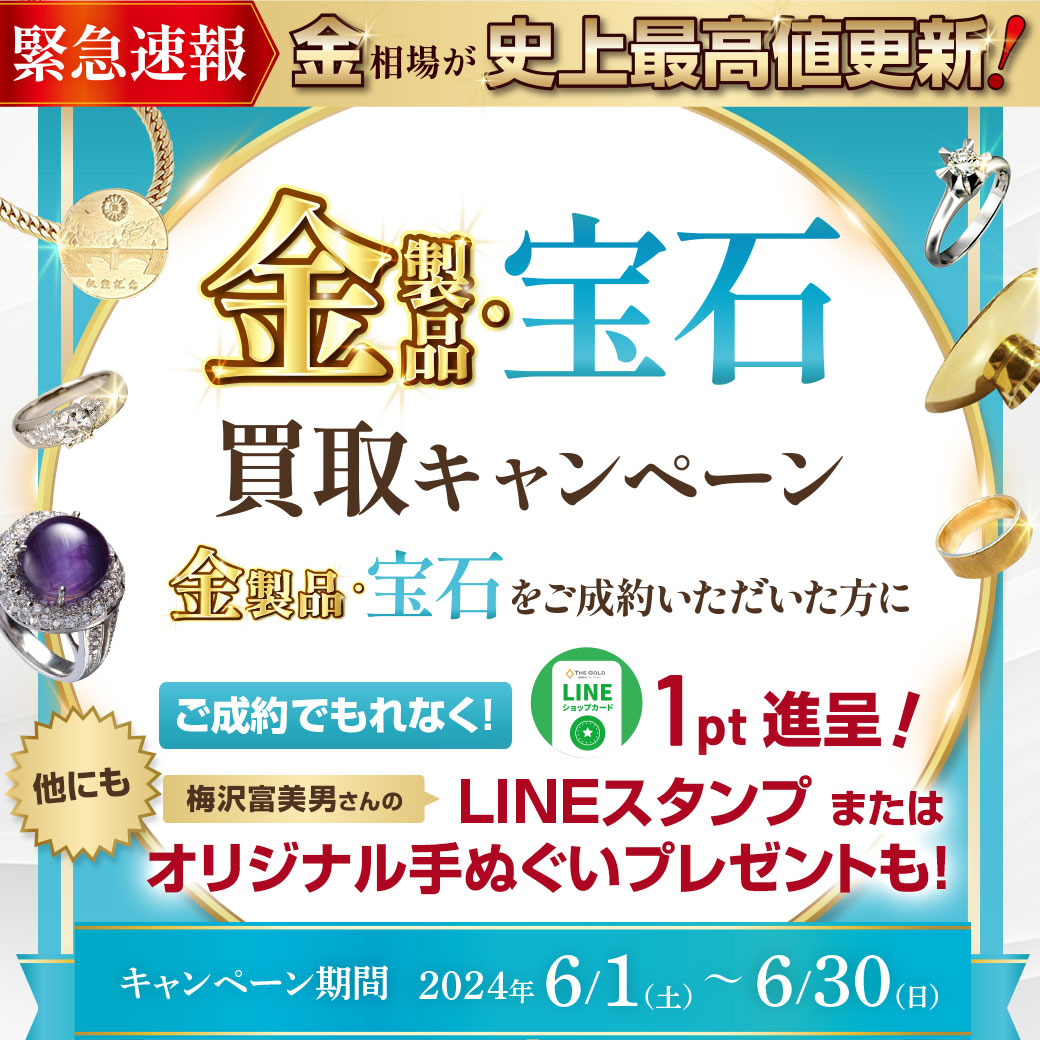 ザ・ゴールドでは、6月1日より、金製品・宝石買取キャンペーンを開始しました。