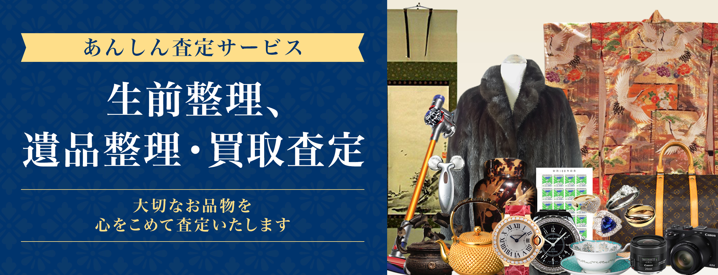 ご自身やご家族が大切に使われていた品物は、1つ1つ心をこめてしっかり査定・買取いたします。