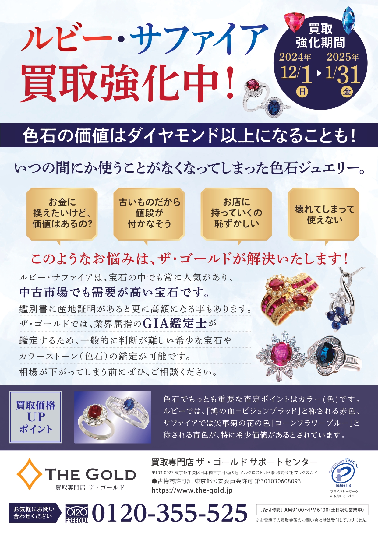 ザ・ゴールドでは、相場が変動している今、「ルビー・サファイア」の買取を強化いたします。