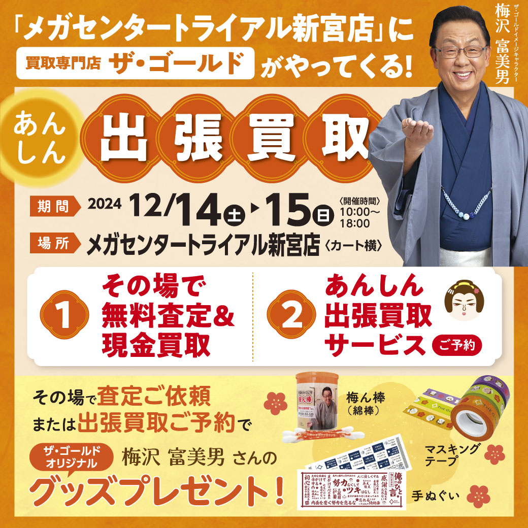 この度、「メガセンタートライアル新宮店」さまにて、THE GOLDの無料査定イベントを開催いたします。