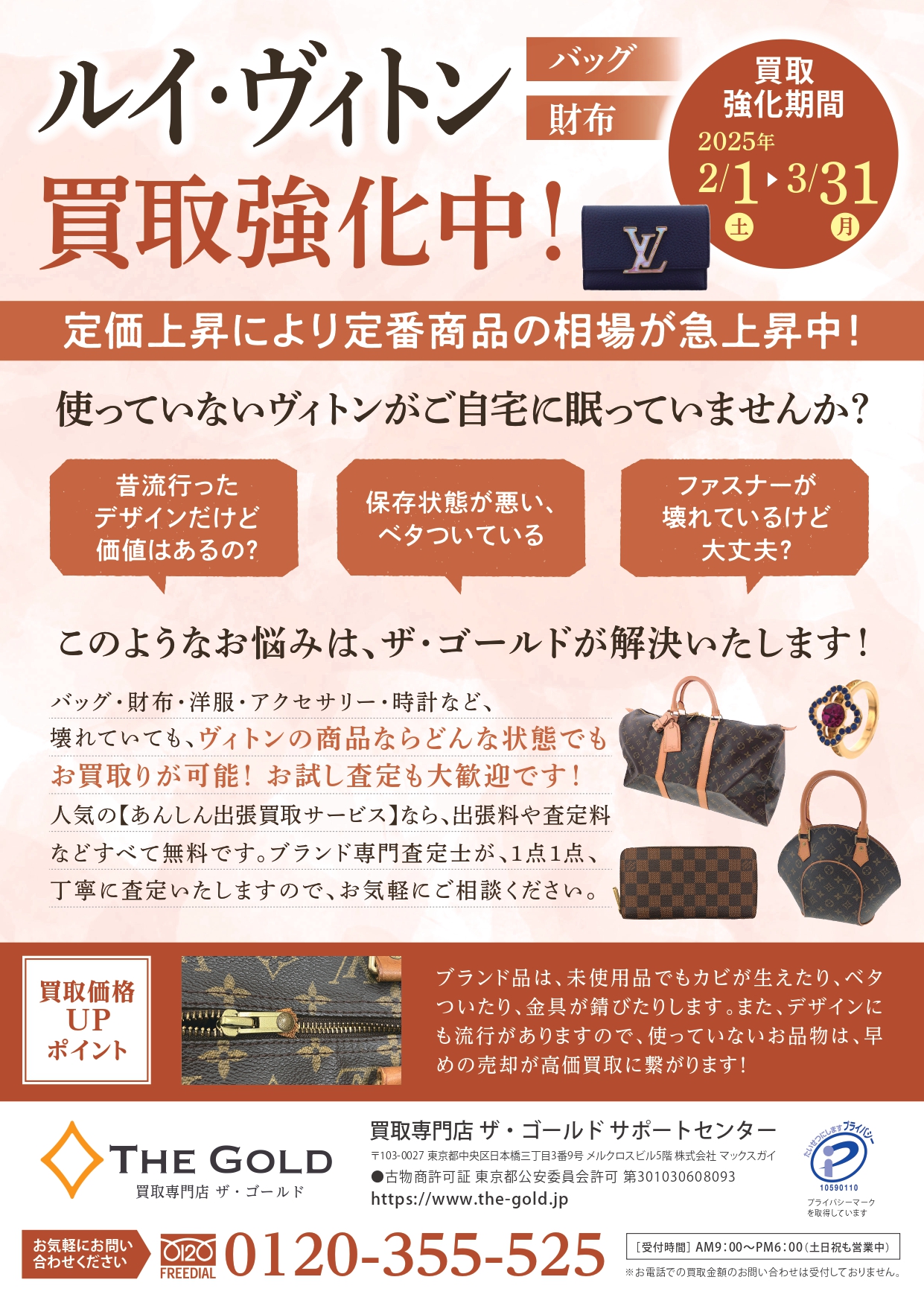 ザ・ゴールドでは、海外での需要が高まっている今、「ルイ・ヴィトン」の買取を強化いたします。