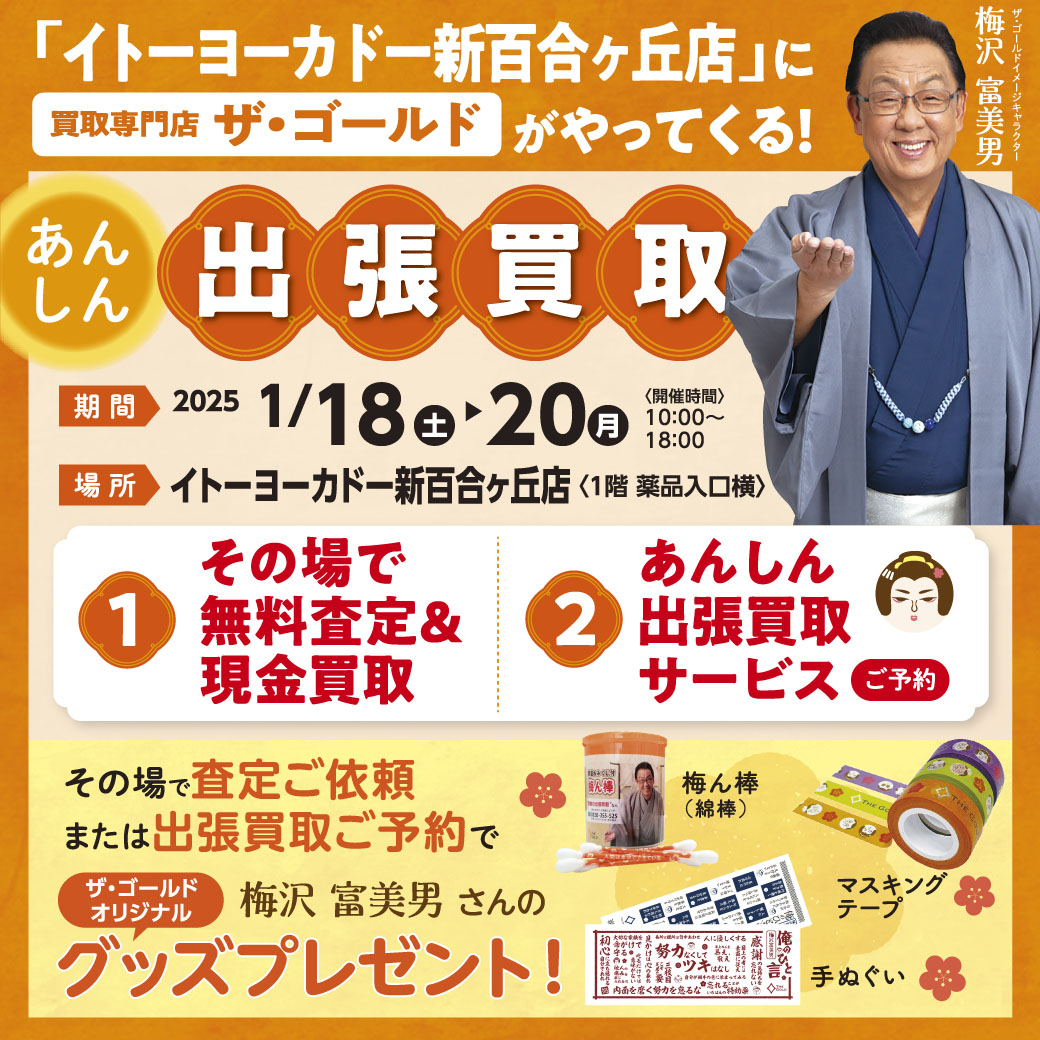 この度、神奈川県「イトーヨーカドー新百合ヶ丘店」さま、福岡県「フェリスタウン城野」さまTHE GOLDの無料査定イベントを開催いたします。