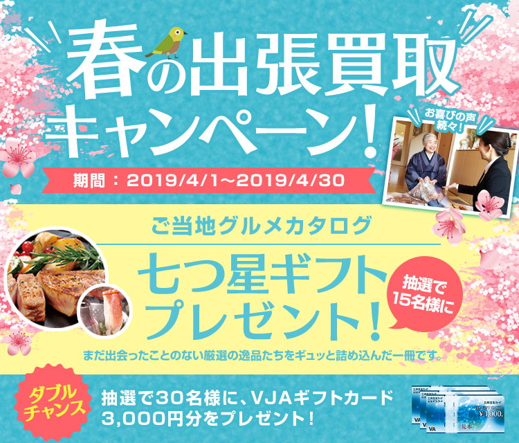 【内容】 期間中に出張買取をお申込みいただいた方の中から抽選で15名様にご当地グルメカタログ「七つ星ギフト」プレゼント!