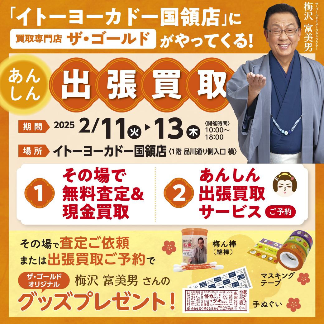 その場で査定をご依頼・出張買取をご予約いただいたお客さまに、「梅沢富美男さんのオリジナルグッズ」をプレゼントいたします。数に限りがありますので、ぜひお早めにご利用ください。