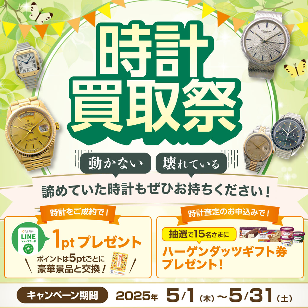 ザ・ゴールドでは、5月1日より、初夏の訪れを記念して「時計買取祭」を開始いたしました。