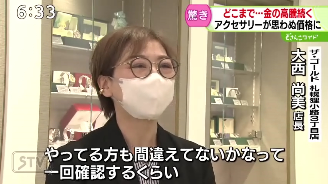 2025年4月30日(水)STVテレビ「どさんこワイド」さまの番組内で、ザ・ゴールド 札幌狸小路3丁目店 店長の大西が取材協力をいたしました。