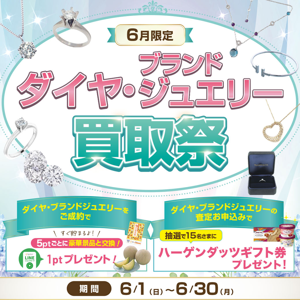 ザ・ゴールドでは、6月1日からジューンブライドに合わせた、期間限定「ダイヤ・ブランドジュエリー買取祭」を実施いたします。