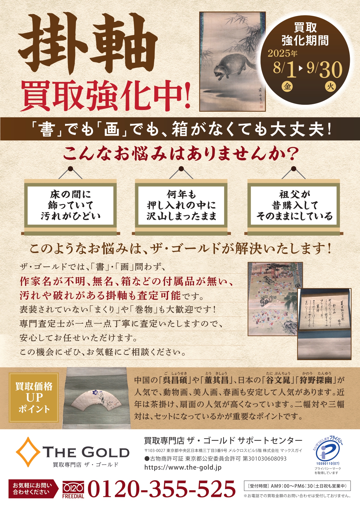 ザ・ゴールドでは、「掛軸」の買取を強化いたします。