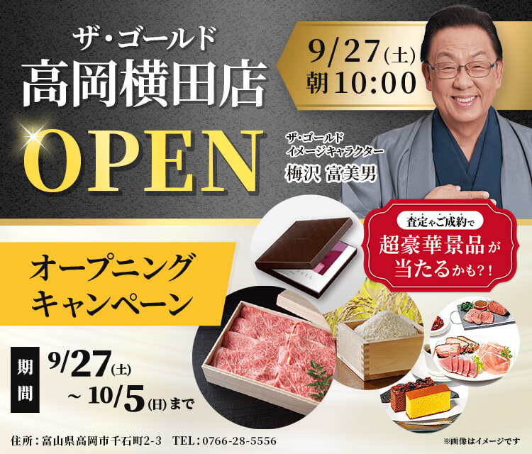 これを記念して、「ザ・ゴールド高岡横田店」オープニングキャンペーンを開催します!
