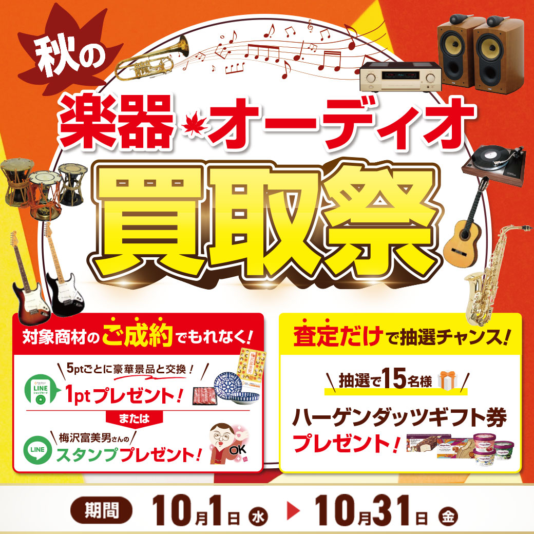 そこで、ザ・ゴールドでは10月1日より「秋の楽器・オーディオ買取祭」を開催いたします。