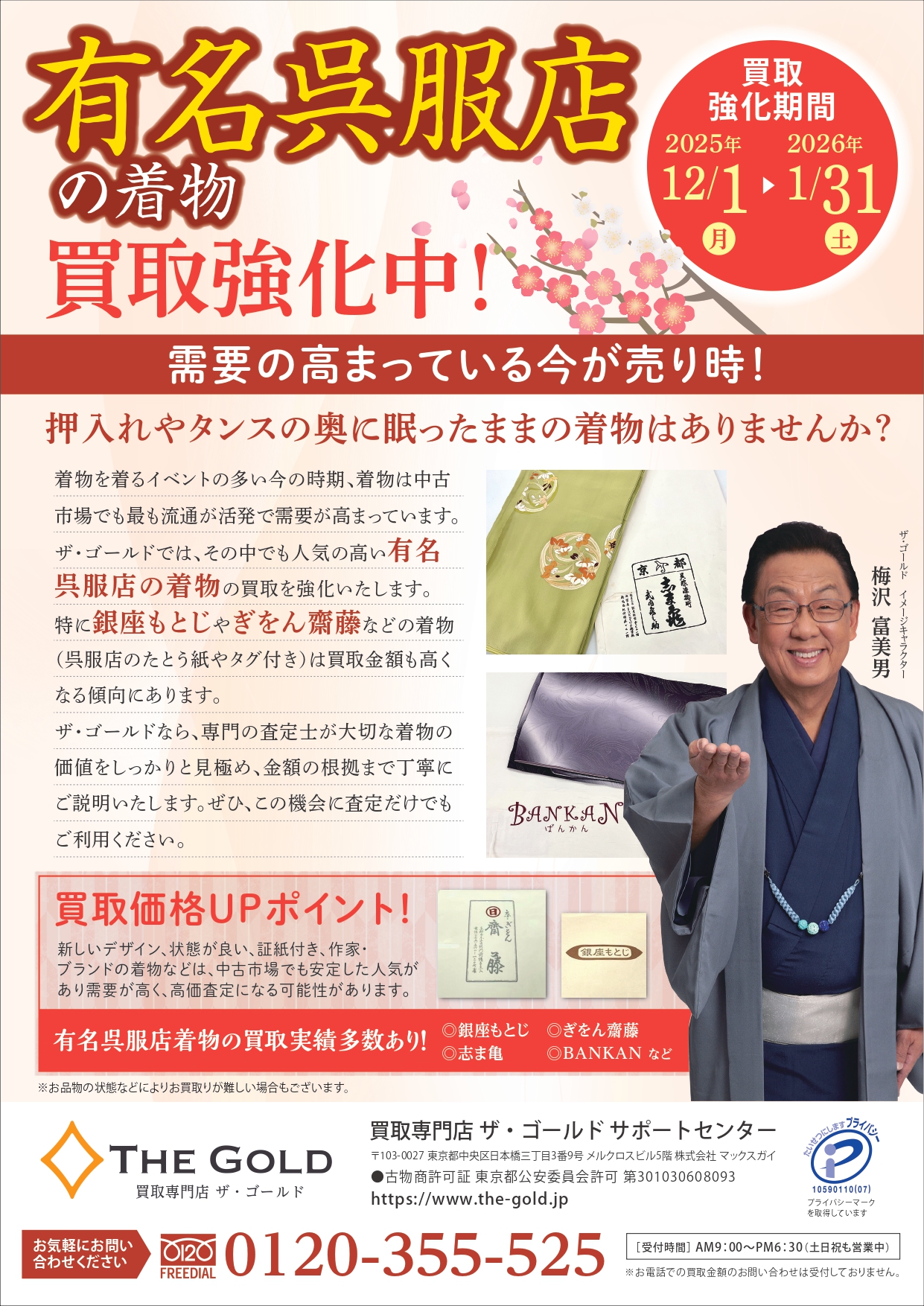 ザ・ゴールドでは、これから着用時期を迎える「有名呉服店の着物」の買取を強化いたします。