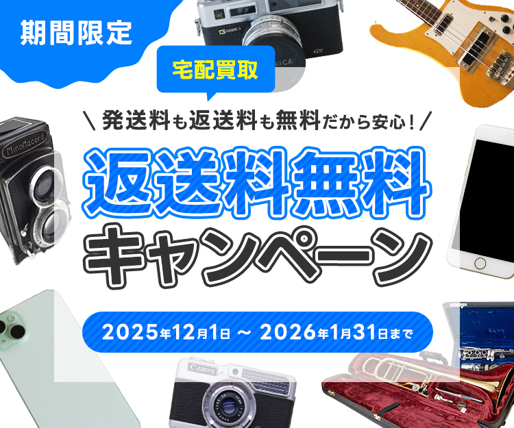 12月1日より、日頃の感謝の気持ちを込めて、宅配買取(カメラ、楽器、スマートフォン)の返送料無料キャンペーンを開始いたしました。