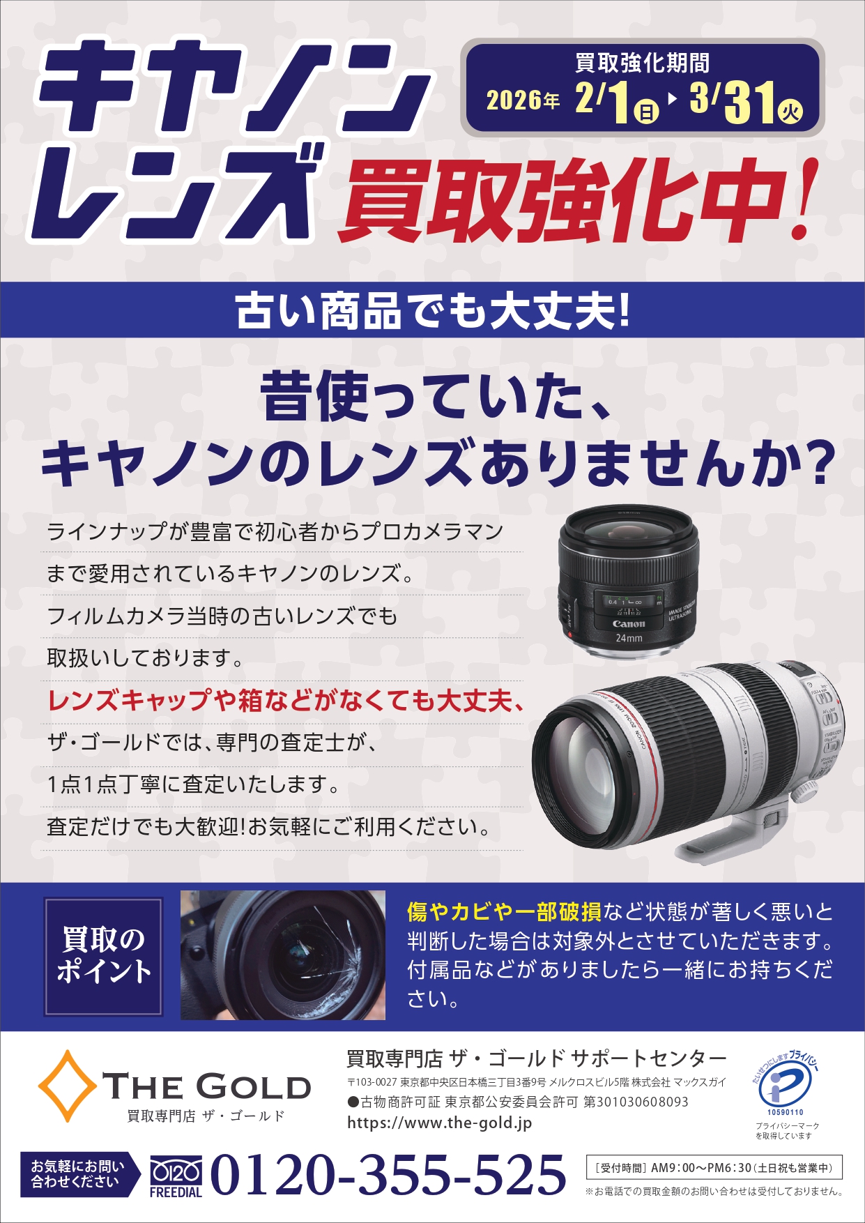 ザ・ゴールドでは、人気再燃の「「キヤノン レンズ」の買取を強化いたします。