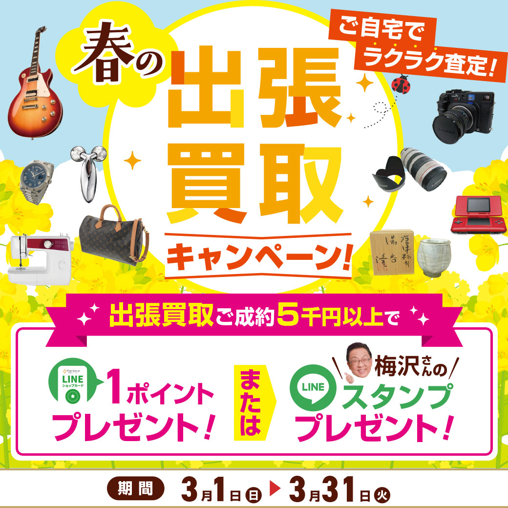 ザ・ゴールドでは、3月1日より「春の出張買取キャンペーン」を実施いたします。 ご自宅に居ながら、最新の市場価格に基づき、経験豊かな査定士が一点一点誠実に査定いたします。重いお品物や大切に保管されていたお品物も、この機会にぜひご相談ください。