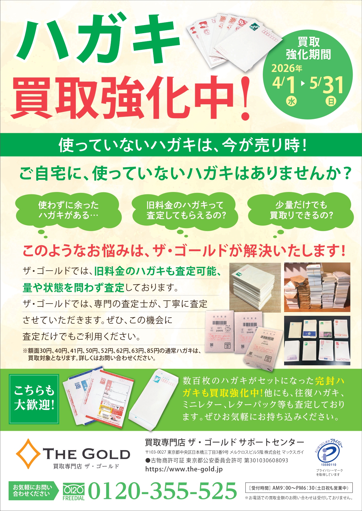 ザ・ゴールドでは、現在「ハガキ」の買取を強化いたします。
