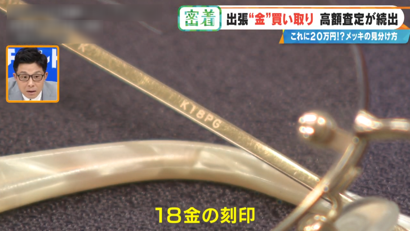 このように、一見すると価値が分かりにくいお品物でも、実は金が使われているケースが多くございます。番組では、「本物の金とメッキの見分け方」についても詳しく解説いたしました。