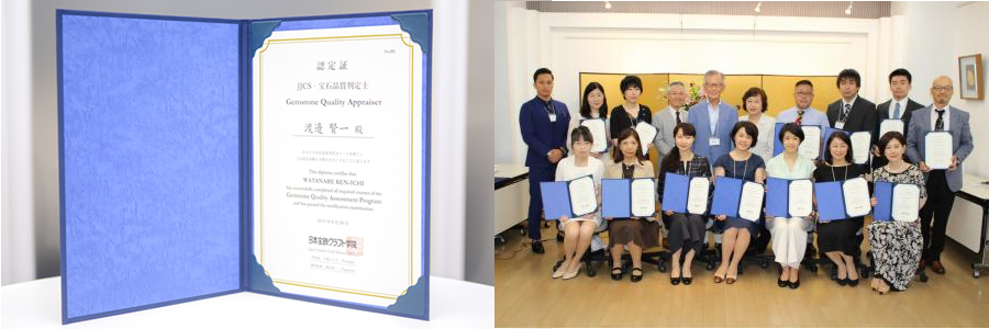 弊社の専属宝石鑑定士の渡邉賢一が、2019年6月26日に行われた第1回の宝石品質判定士試験に合格し、第1期として認定番号1番を取得いたしました。